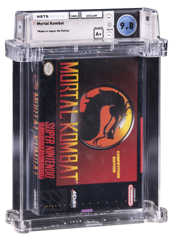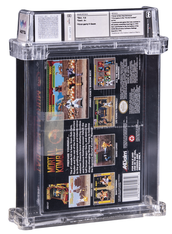 An ungraded "like new" box copy of SNES Mortal Kombat can be bought privately through eBay for as little as $79.95, presenting an almost 990% increase if purchased under the gavel with professional grading.