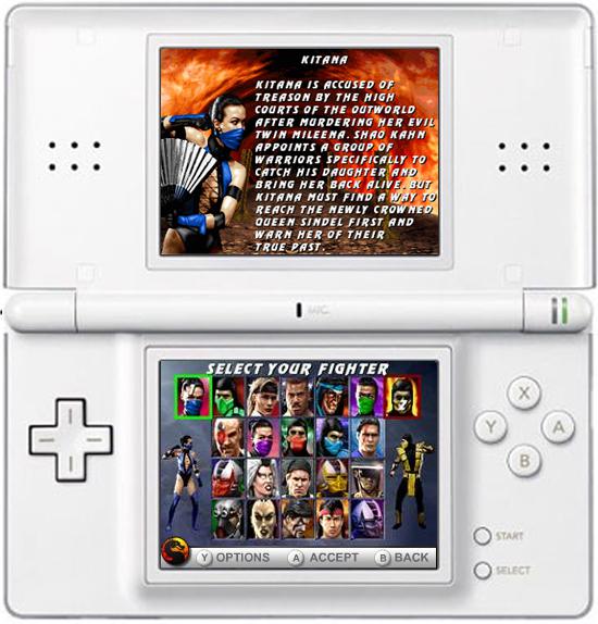 Ed Boon: We are also working on some ideas for the touch screen. However, since the player's hands will be busy with the direction pad and the attack buttons, we probably won't do something crazy like having the player touch the screen for punches and kicks.