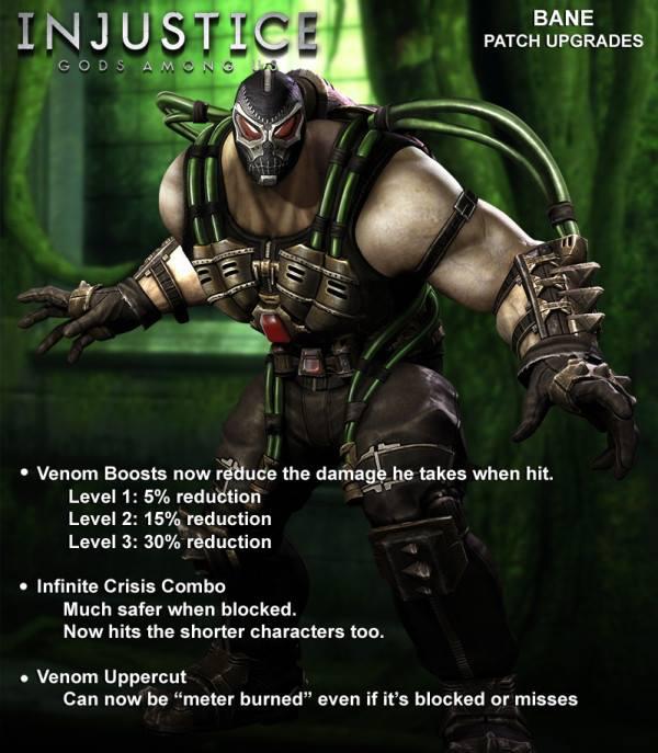 Bane now takes 95%, 85%, 70% damage while in Venom Boost (character power) levels 1, 2, 3 respectively.