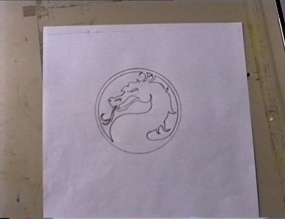 The logo designer & series co-creator went deep in a thread posted to Twitter where he shared a recently recovered drawing of the first finished Dragon Logo [pictured below] taken from footage filmed by artist John Vogel for the digitization process. Edited versions appeared in the 1992 classic everywhere from the character select screen, to Shang Tsung's Throne Room arena.