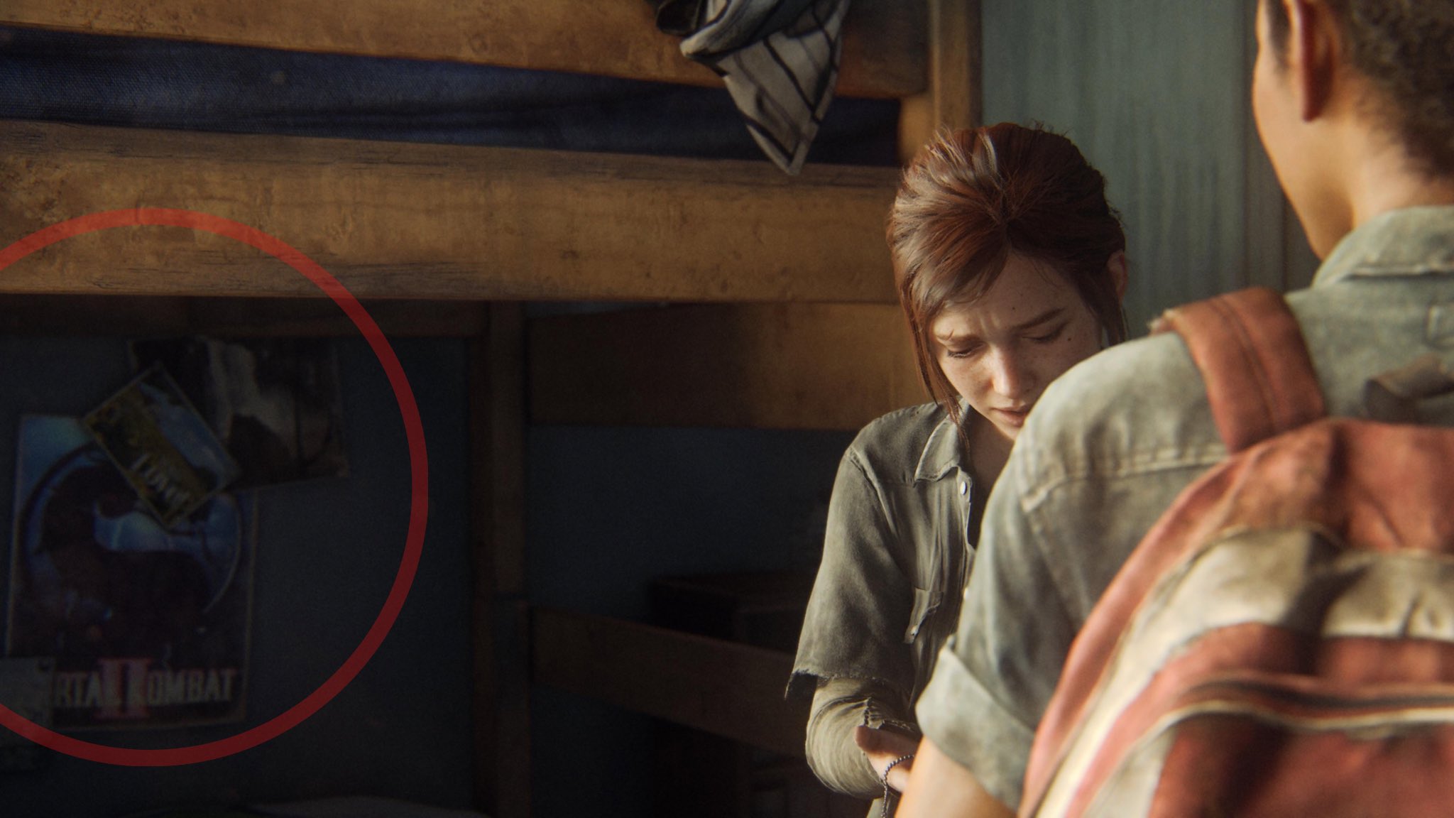 Eagle-eyed fan account Naughty Dog Central called attention to the reference in a recent Twitter post, showing a Mortal Kombat II poster added to a scene from the 2013 Left Behind downloadable content. The addition fills out the world of the remake, but some are seeing more than verisimilitude. Inspect the image below for the subtle addition: