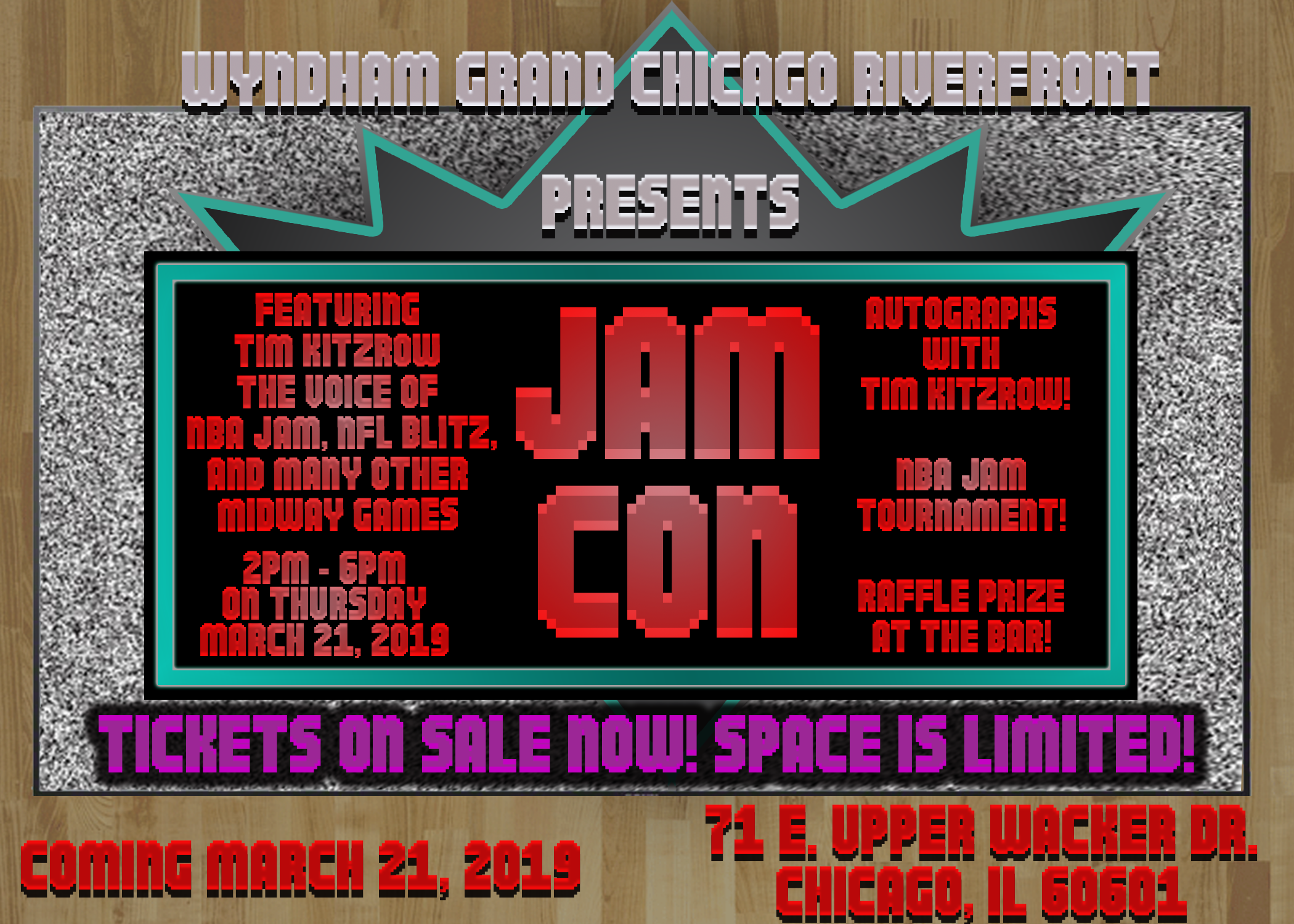On a somewhat-related note, another classic Midway arcade game will also have its own convention the day before C2E2 gets started: On Thursday, March 21, JamCon 2019 is kicking off! The event will take place at Hoyt's in the Wyndham Grand Chicago Riverfront hotel. Tim Kitzrow, the famous voice behind NBA Jam and other huge fan favorite sports titles such as NFL Blitz, NHL Hitz, and the newly released Mutant Football League will be on hand to sign autographs, take pictures and hang out with you! The event will also host a tournament that will feature a one of a kind NBA Jam Trophy that goes to the winner, and a raffle for another NBA Jam prize at the bar! You get one raffle ticket per food or beverage item you purchase entered into the drawing. Raffle tickets are ONLY given to those who have paid for a ticket to attend the event. Due to limited space, the event has two separate ticket times you can purchase for. The first is slot from 2pm to 4pm, and the other slot is from 4pm to 6pm. Ticketed times do not affect those competing in the tournament. Rules for the tournament are simple: it’s a 1v1 tournament, and no cheat codes or hidden characters are allowed. Only 100 tickets are available to buy, so get them while you still can since space is limited!