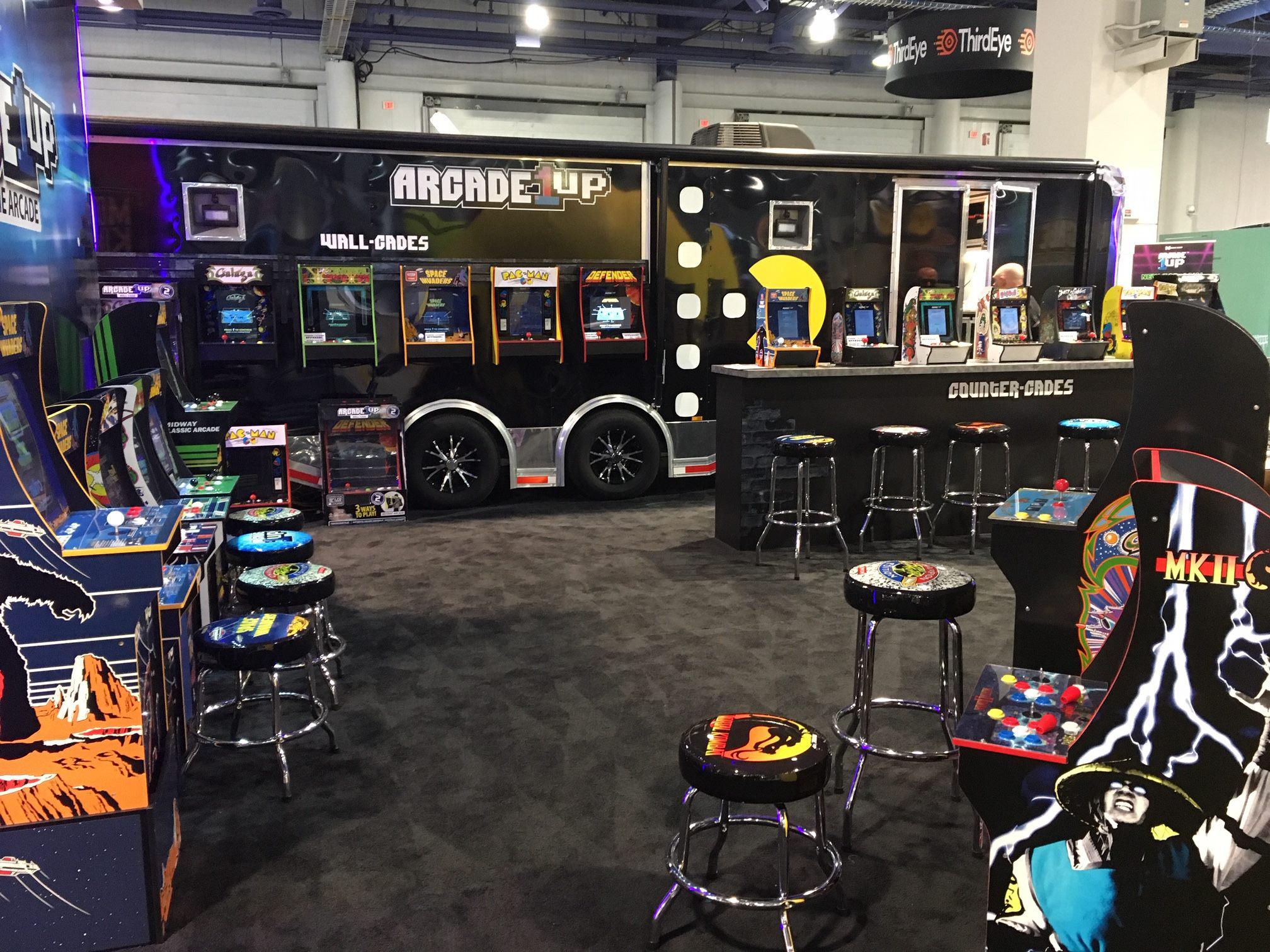 UPDATE: Some new photos were posted on Arcade 1Up's Facebook Page (as well as Josh Tsui's Twitter) from this year's Consumer Electronics Show which reveal two new products: special Mortal Kombat themed bar stools and risers!