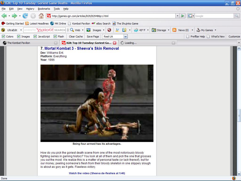 The folks over at IGN have compiled a list of what they believe to be the top ten goriest game deaths of all time, and of course, Mortal Kombat appeared on the list. To be sure, there were some other gruesome deaths which also gave MK a run for its money.