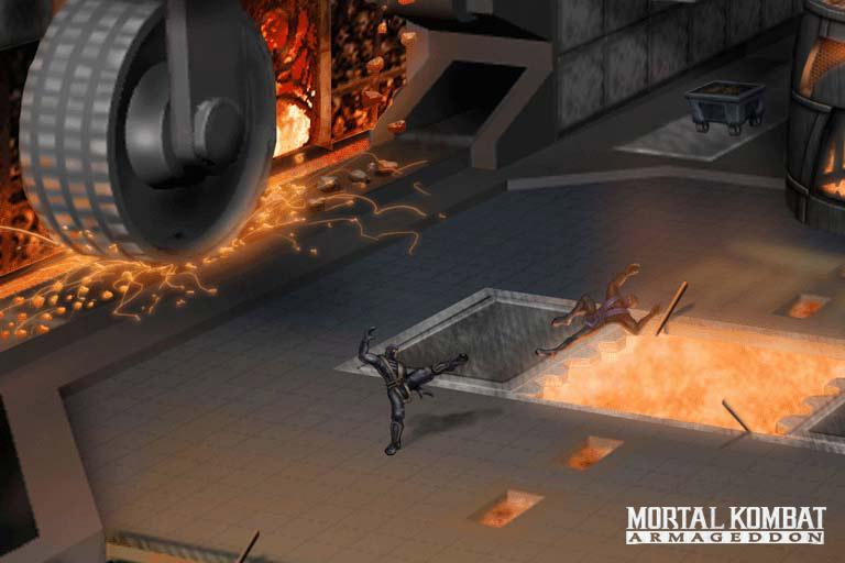 The official Midway Games Boards have sent out a newsletter to its members which contains exclusive content and information! Firstly, included in a new concept art from the Firewell stage. In this image, the death trap in the arena's center is being utilized. Grinding wheels and other mining equipment can be noticed in the background.