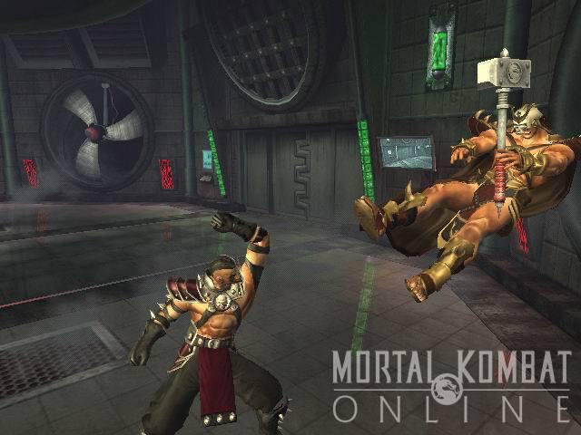 Midway has come through for the fans again! This time, they have released two screenshots from the upcoming Mortal Kombat: Armageddon that have not been seen anywhere else! One of the screenshots features a confrontation hinted at even as far back as Mortal Kombat 4; in it, Reiko sends Shao Kahn flying with an uppercut in MK4's Prison stage. In the other screenshot, Sheeva can be seen throwing one of her fireballs towards Fujin, while in the Subway stage from Mortal Kombat 3.