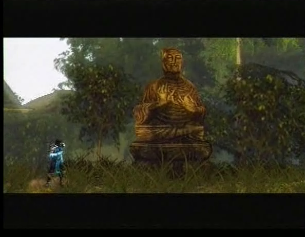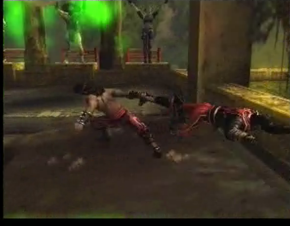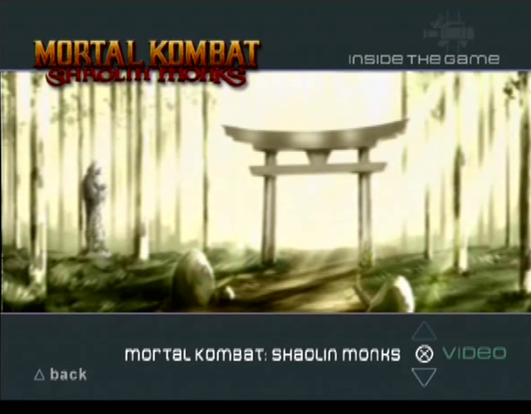Unfortunately, the demo discs are not identical. The PS2 version is very rich in special features, including a short image trailer which shows off some of the cool artwork from the game, and a really nice "Behind the Scenes" video which will probably be included in the final game. Presumably, the extra features are included in the PS2 version to make up for the someone toned down violence in that version of the demo. While X-Box users get to enjoy all the blood and gore of the final version, PS2 users will see black blood instead of the normal red. In addition, Fatalities and some of the more graphic cut-scenes are censored out as well, as can be seen in one of the pics below.