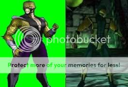 Alternate: his previous MKTrilogy costume, its just basically scorpion but green... oh and his eyes are different and he doesnt have the skull on his belt or that ninja-flappy thing... yeh.