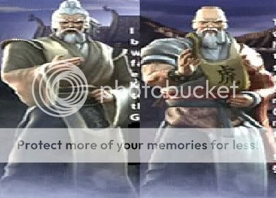 Alternate: OMG! once again lame, hes bald, but still has the mushy and beard... a yellow bib thing, a red cloth tied to his waist by black ribbon, white top, white flappy thing black pants, 1 short sleeve, wrist things and the other arm has like a red sleeve or something i dont know....