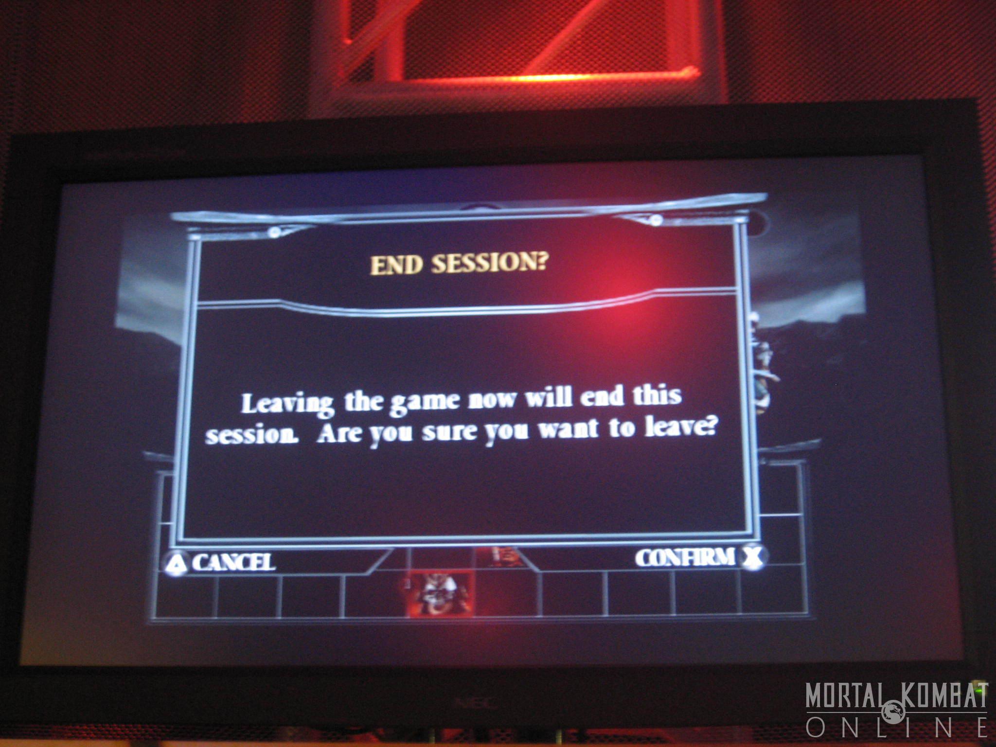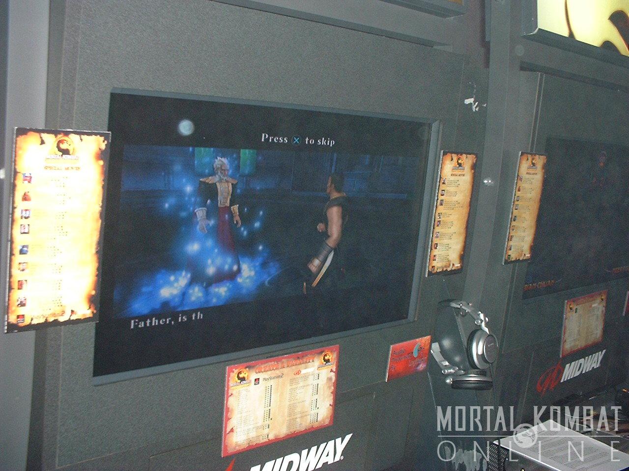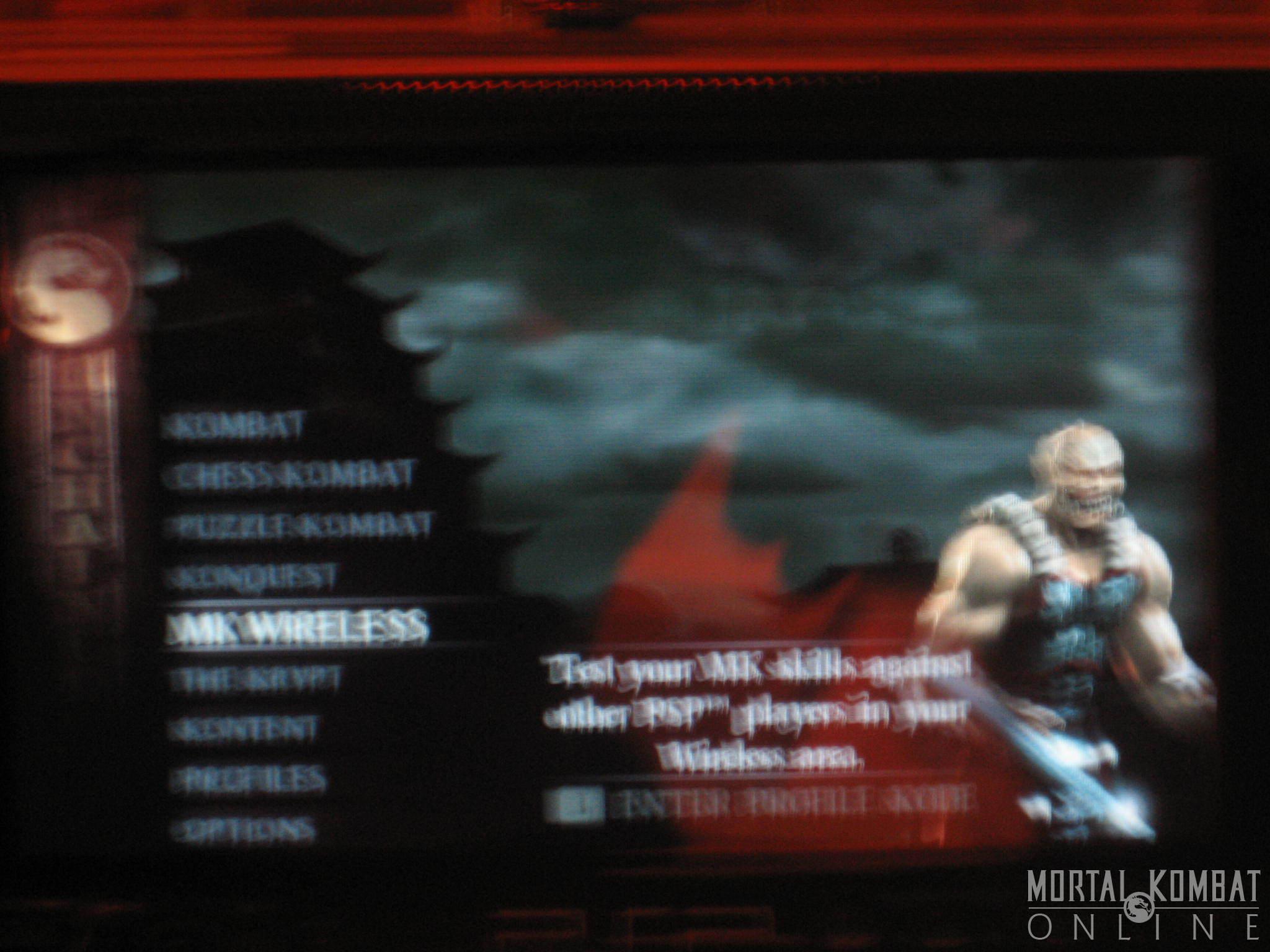 Finally, we got a chance to play MK Unchained on the PSP. There were only a couple of characters available - Scorpion, Goro, Shao Kahn, Noob-Smoke, Baraka, Sub-Zero, Jax, and Bo Rai Cho. They seemed to play just like normal as in MKD, and the graphics were much more crisp than expected. The FMV intro is here in all its glory. And wireless mode is working great! There is one problem where pausing the game doesn't stop the action from going - your opponent isn't stopped form playing and will therefore beat you mercilessly. Other than that, it seems like a perfect translation of MK Deception and will, in fact, be better when they add the exclusive characters to the roster.