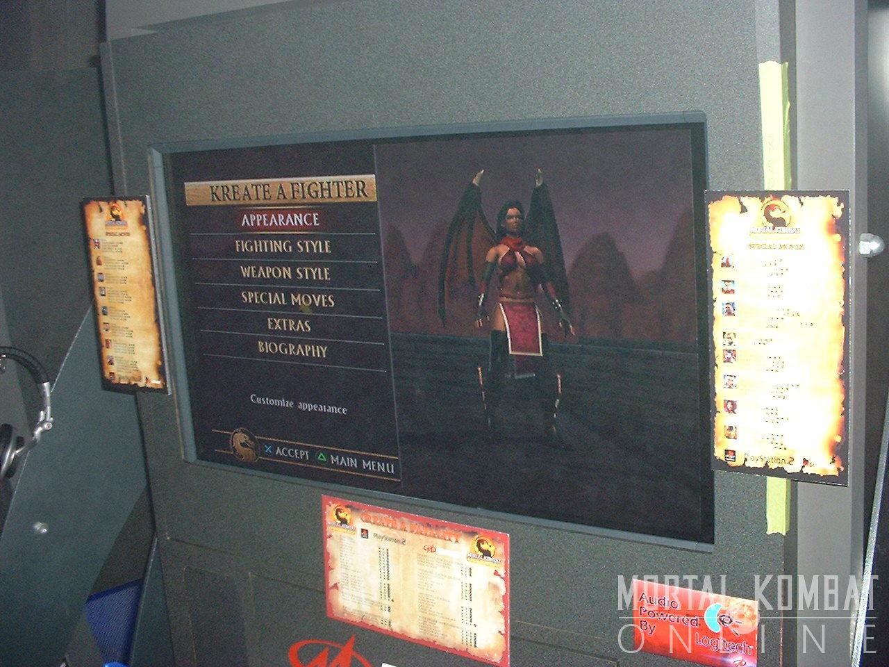 The Create a Player system was also present in the E3 build. You can choose the character's gender, size, weapon, race, basic and special moves, as well as a host of other features. One of the best created characters at the show had to be an Incredible Hulk someone had made. You can give them other attributes as well (such as Baraka's mouth or Nitara's fangs), and you can come up with a name for your character - as well as a name for their weapon, their moves, their homeworld, and even a paragraph you can write as their bio. A lot of the created characters posted in the Fan Submission forum would probably do well if adapted to this mode and used online.