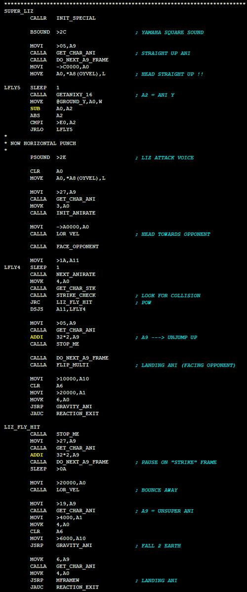 MK1 Source Code - Sonya's Square Wave Flight - Written in 34010 Assembly: