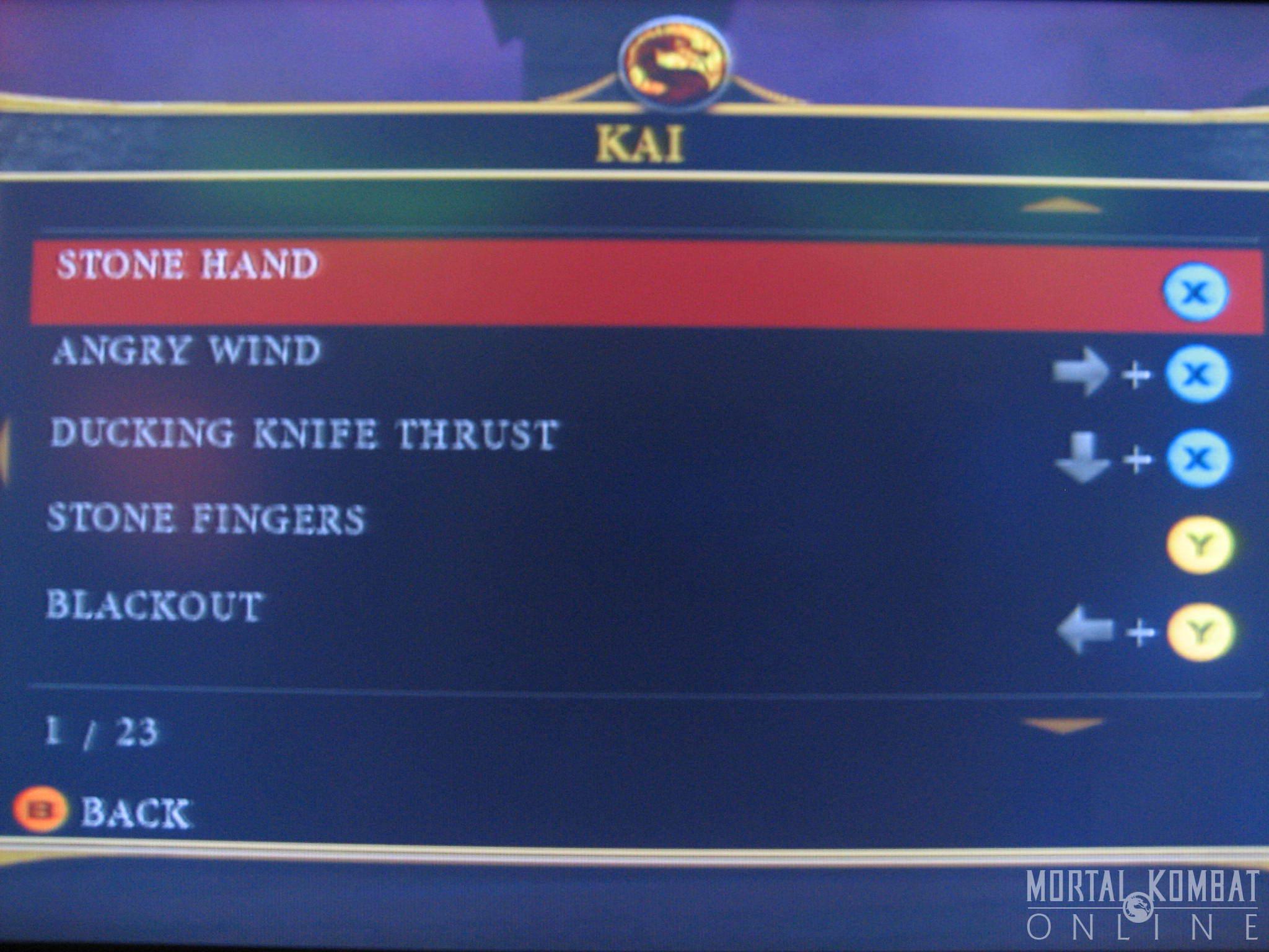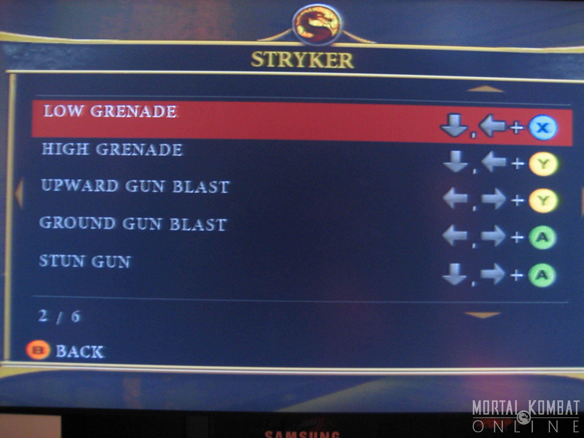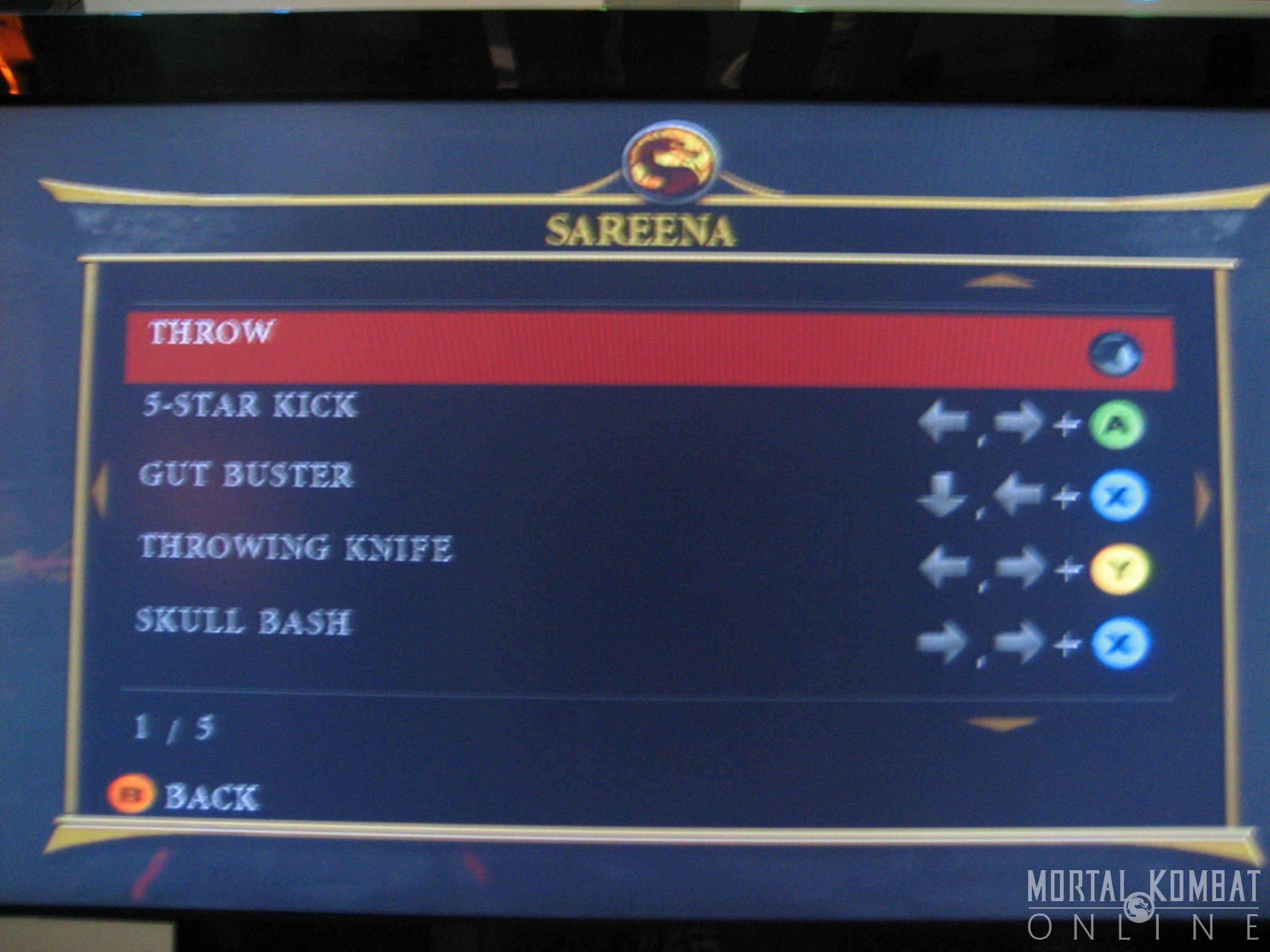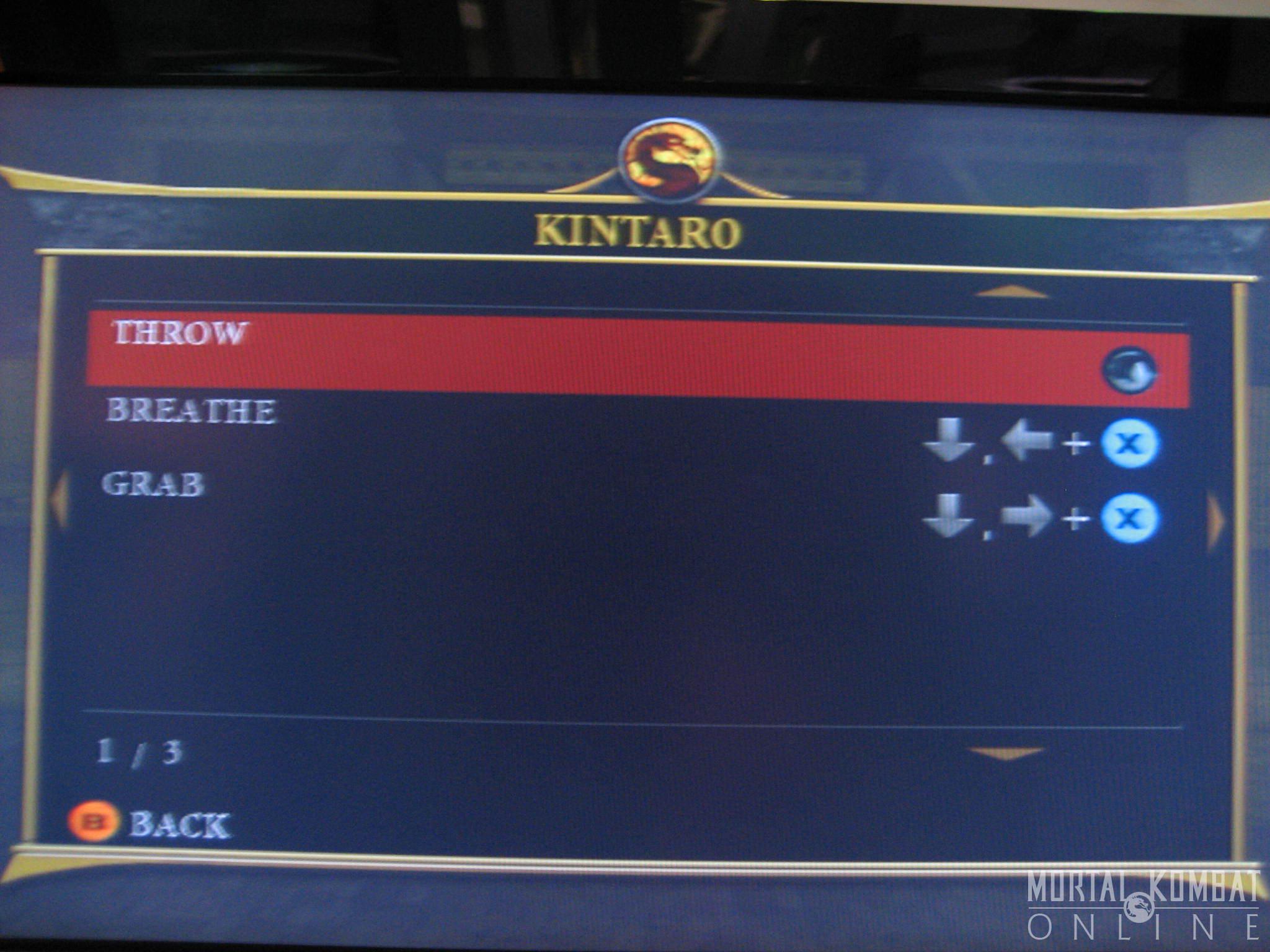 In regards to the special moves, there are many moves which really capture the feeling of each character. Scorpion's teleport has a "ghostly" effect to it that looks better than ever. When he throws his opponent, he pushes them away - but while they're in the air, throws the spear upward, and brings them back to him for more punishment. Jarek has a move where he takes a lasso and slams you all around the room. Kintaro has the ability to bring you towards him from across the arena simply by pulling his arms towards himself fast enough to create a gust of wind that traps his opponents. Stryker's grenades from MK3 are back, and his Taser Fatality from that game is back as a special move. When Sareena uses her throwing knife, the blade actually does get lodged in her opponent's shoulder, impaling them, but it does not cause actual draining on the energy bar (just like Nightwolf's Arrow in MKD).