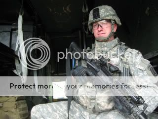 It's my M4. When that picture was taken it only had an ACOG and a PEQ2 laser on it. Now it's got a tac light and a bi-pod gangster grip so it looks really fucking mean almost like a little sniper rifle.