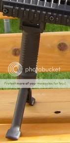 Basically it's just a normal gangster grip but you press a button (on the top where it holds onto the rail system on the barrel) and two bi-pod legs pop out of the bottom.