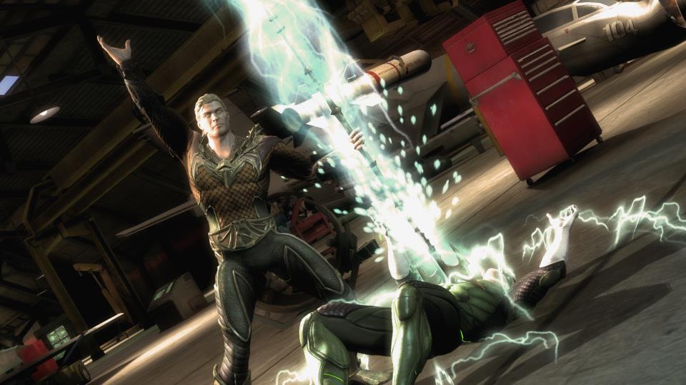With no Injustice Battle Arena this week, we've got new screenshots of two of the heavyhitting heroes' alternate skins [via Facebook]. Aquaman & Batman lead the charge, wearing duds inspired by two of DC Comics' biggest events!