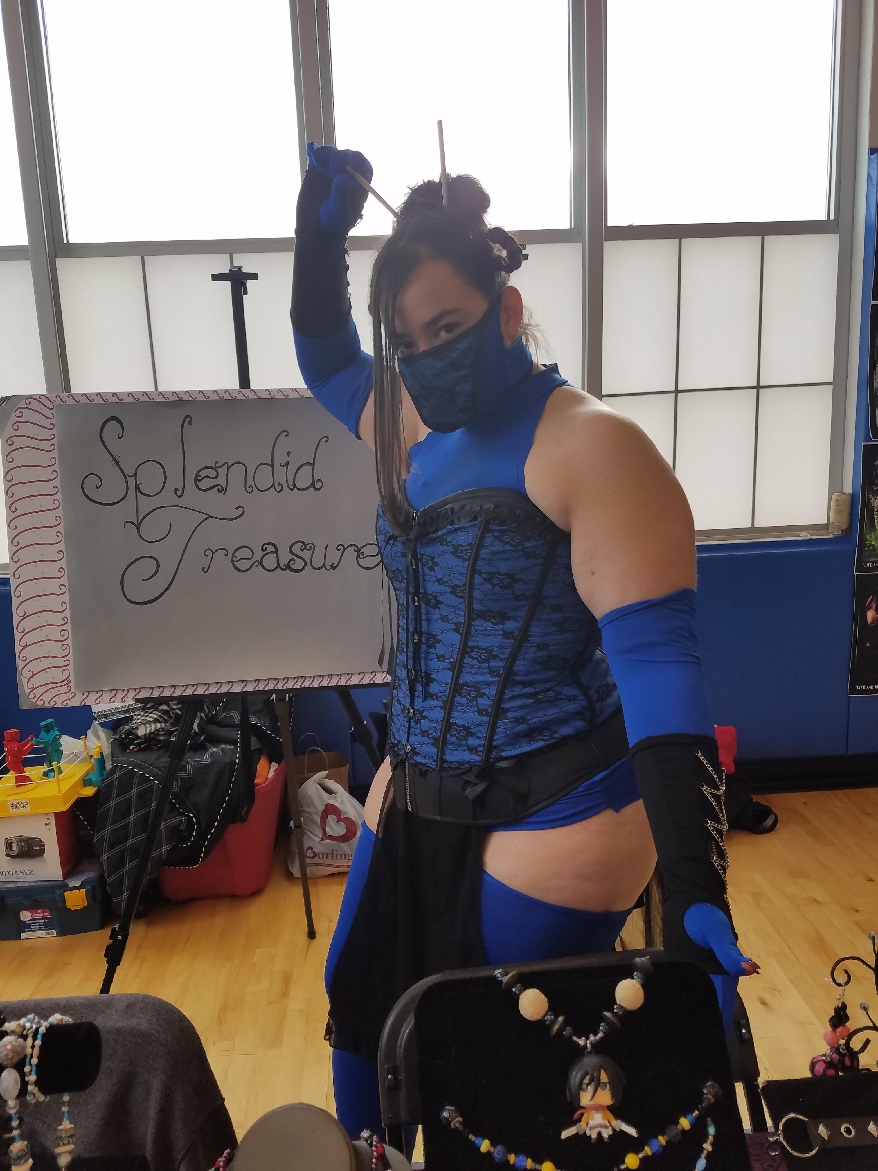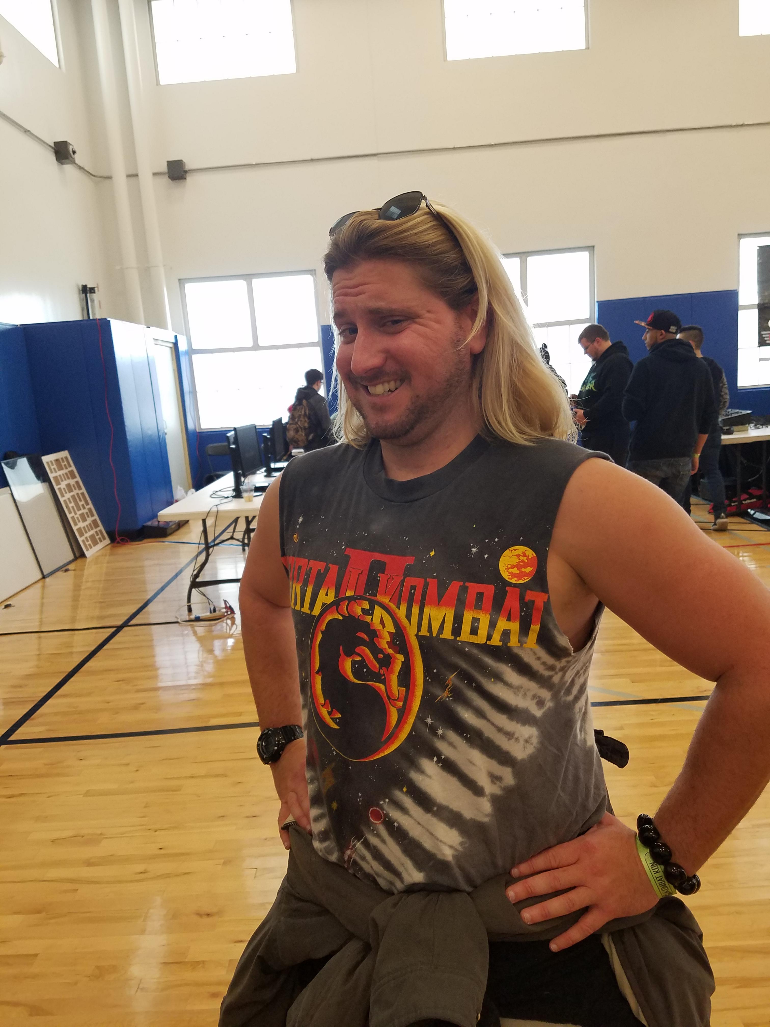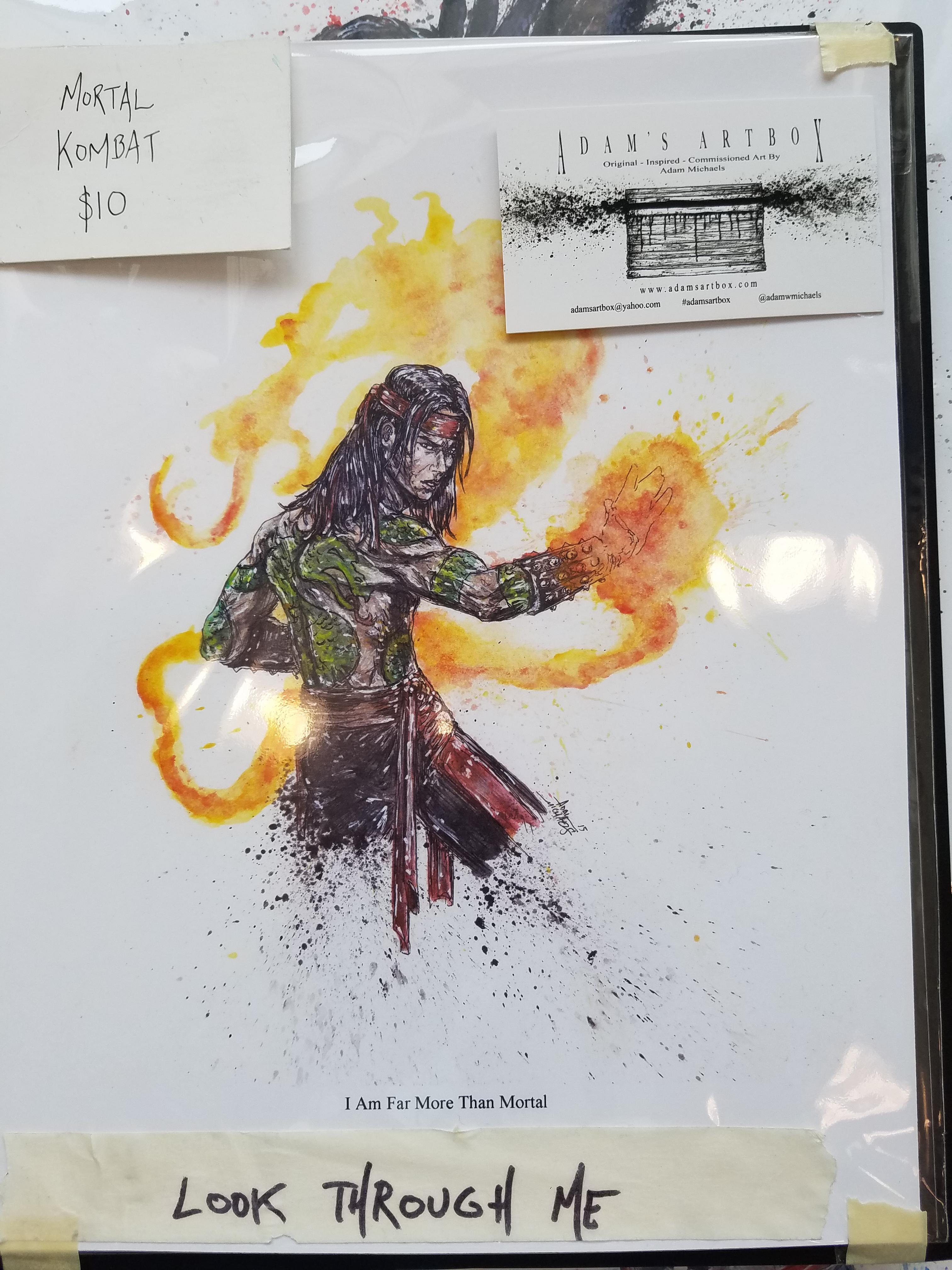 When the kosplayers thinned out, there was no shortage of sights to behold. Adam W. Michaels was in attendance to sell some impressive works of tribute art, capturing impressions of characters from Mortal Kombat X, Mortal Kombat: Legacy and other series, too. He also modeled shirts featuring the MK logo, fighters and Shirai Ryu insignia.