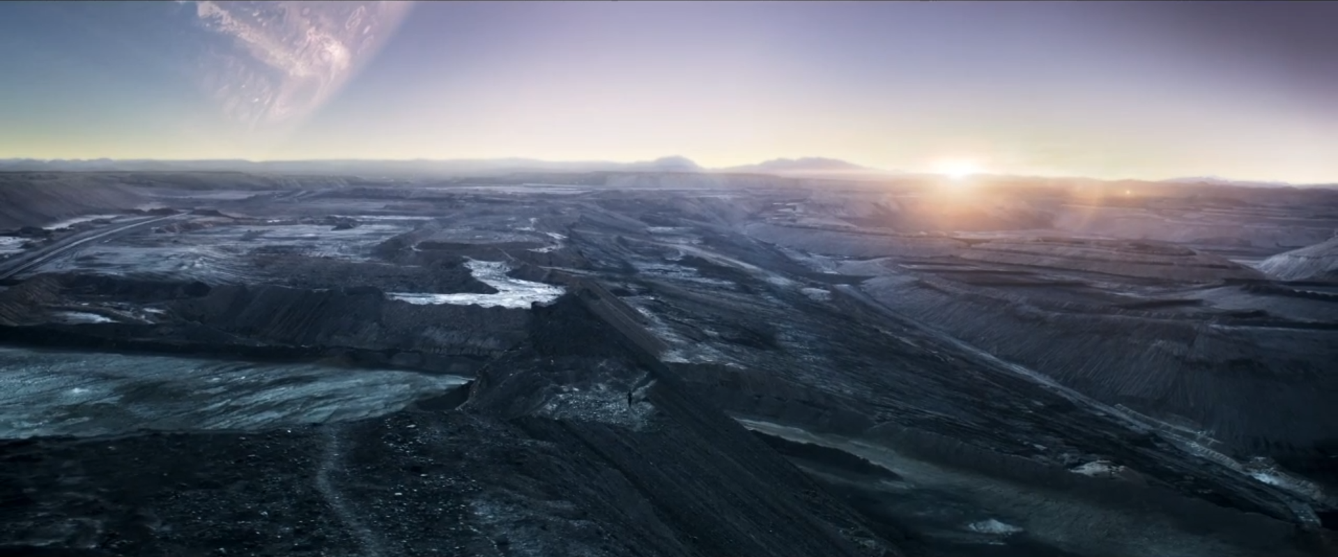 The commentary confirms Mileena (Sisi Stringer) is approaching a wasteland of Outworld in the trailer. The sparse landscape is a disused coal mine in Australia that was largely left as-filmed for the sake of "realism and authenticity" [pictured below]. Although Outworld has typically been a fantastical reality in games, the director didn't want a "VFX feel", opting for less intrusive enhancements.