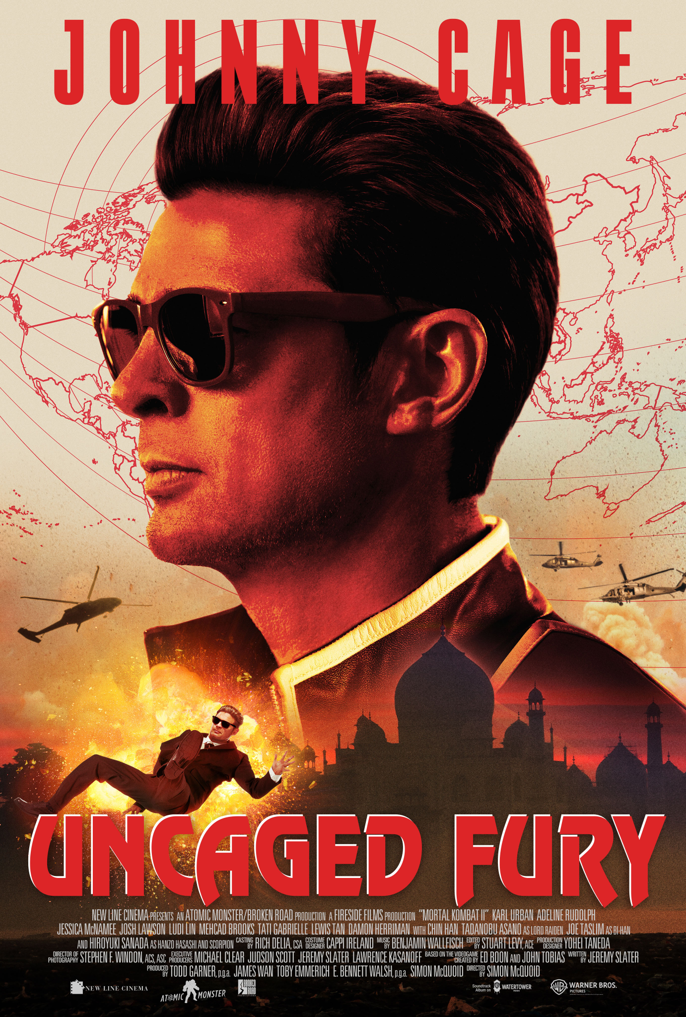 Johnny Cage is BACK -- in another in-fiction movie poster promoting Mortal Kombat II. The live-action theatrical sequel will release its first official trailer tomorrow, but before it does, you can enjoy another sneaky peek at Karl Urban as the tongue-in-cheek action moviestar who boasts some bold credits on his IMDB page. Take a closer look: