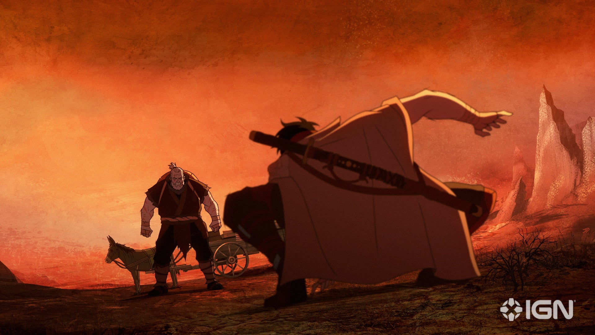 The IGN exclusive reveal shows a squatting swordsman opposite a burly traveler in a barren landscape. This seems to be Kenshi, who arrives as a new focal character voiced by Manny Jacinto. The sword saint will seek the snowy services of Sub-Zero, now voiced by Scorpion actor Ron Yuan, having turned his back on a warrior's life since last year's sequel.