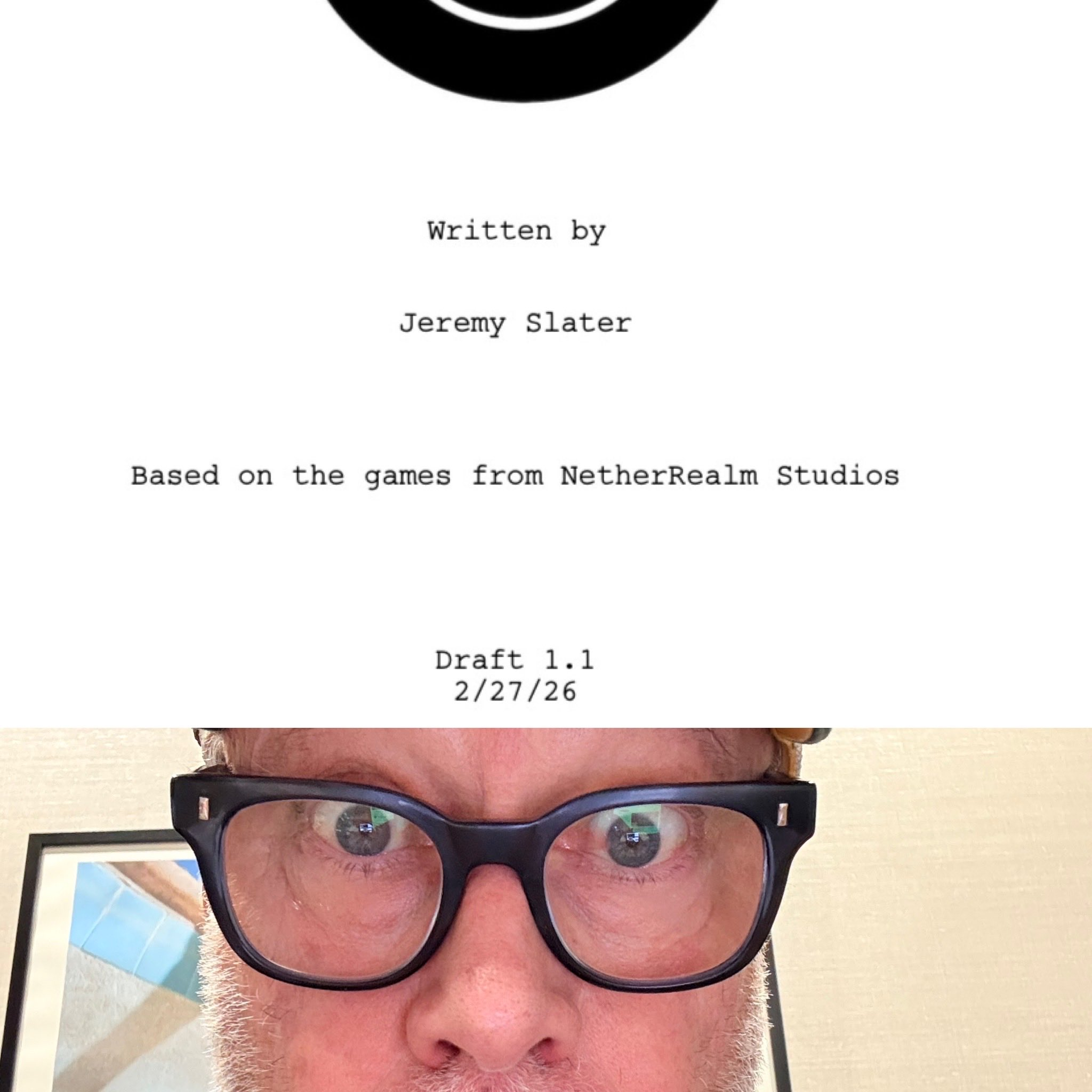 A wide-eyed Garner reacts to setting sights on what appears to be the first revised script of the next Mortal Kombat sequel [pictured below]. "Draft 1.1" was apparently completed on February 27th, credited to Jeremy Slater, who came on board in 2022 to write the upcoming Mortal Kombat II. Slater discussed embracing the "weird" aspects of MK while working on the first sequel.