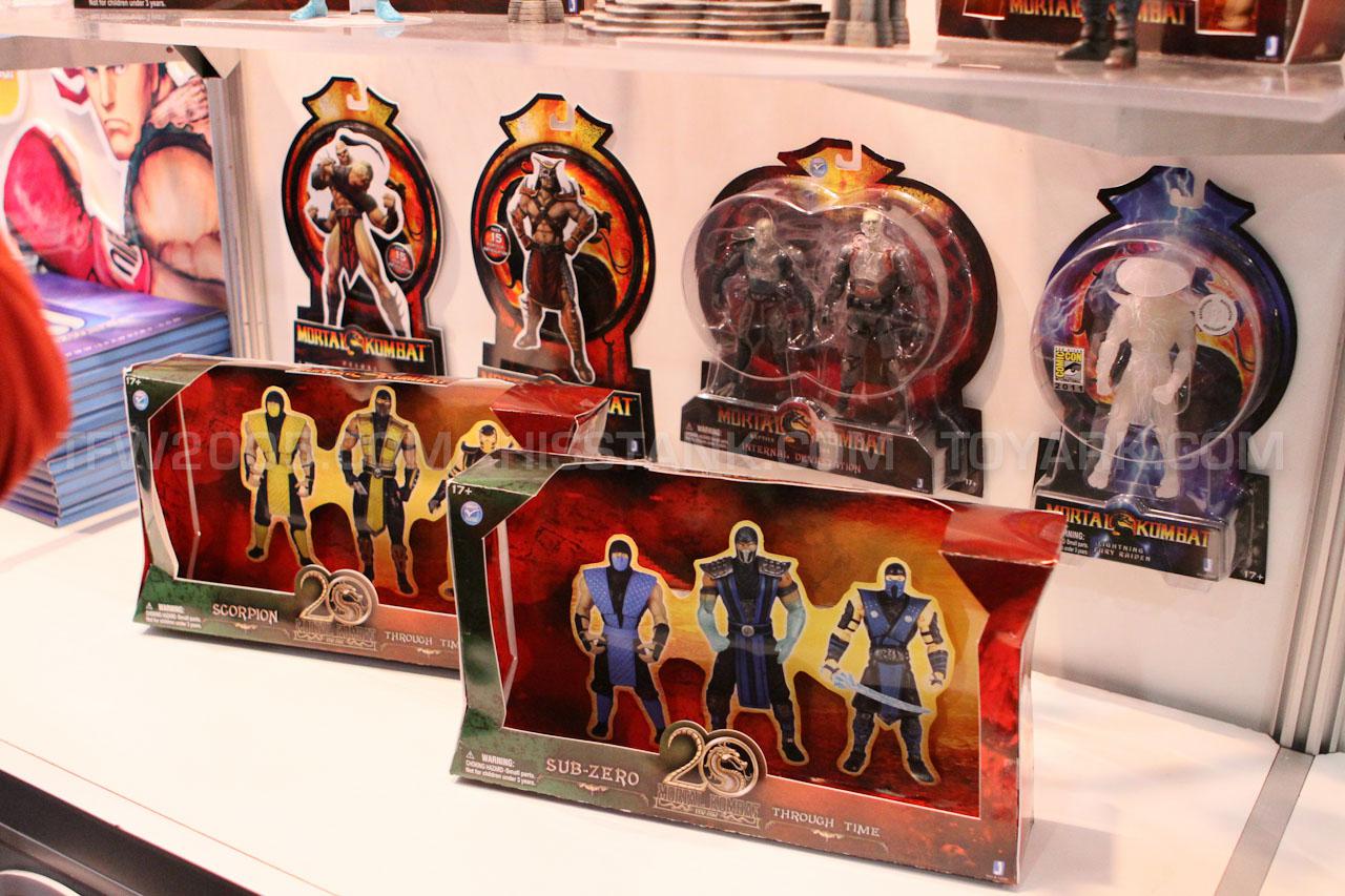 Other retro designs are, of course, well represented in previously advertised Mortal Kombat 3 inspired six-packs, including the male pallete swap characters (with Rain), and the Lin Kuei Cyborgs. Adding to the line-up, the original klassic costumes released as DLC, and twentieth anniversary boxed editions for Scorpion and Sub-Zero, featuring the klassic, kontemporary and previously released figures based on Shaolin Monks. Reptile, Noob Saibot, and other figures can be seen in the displays.