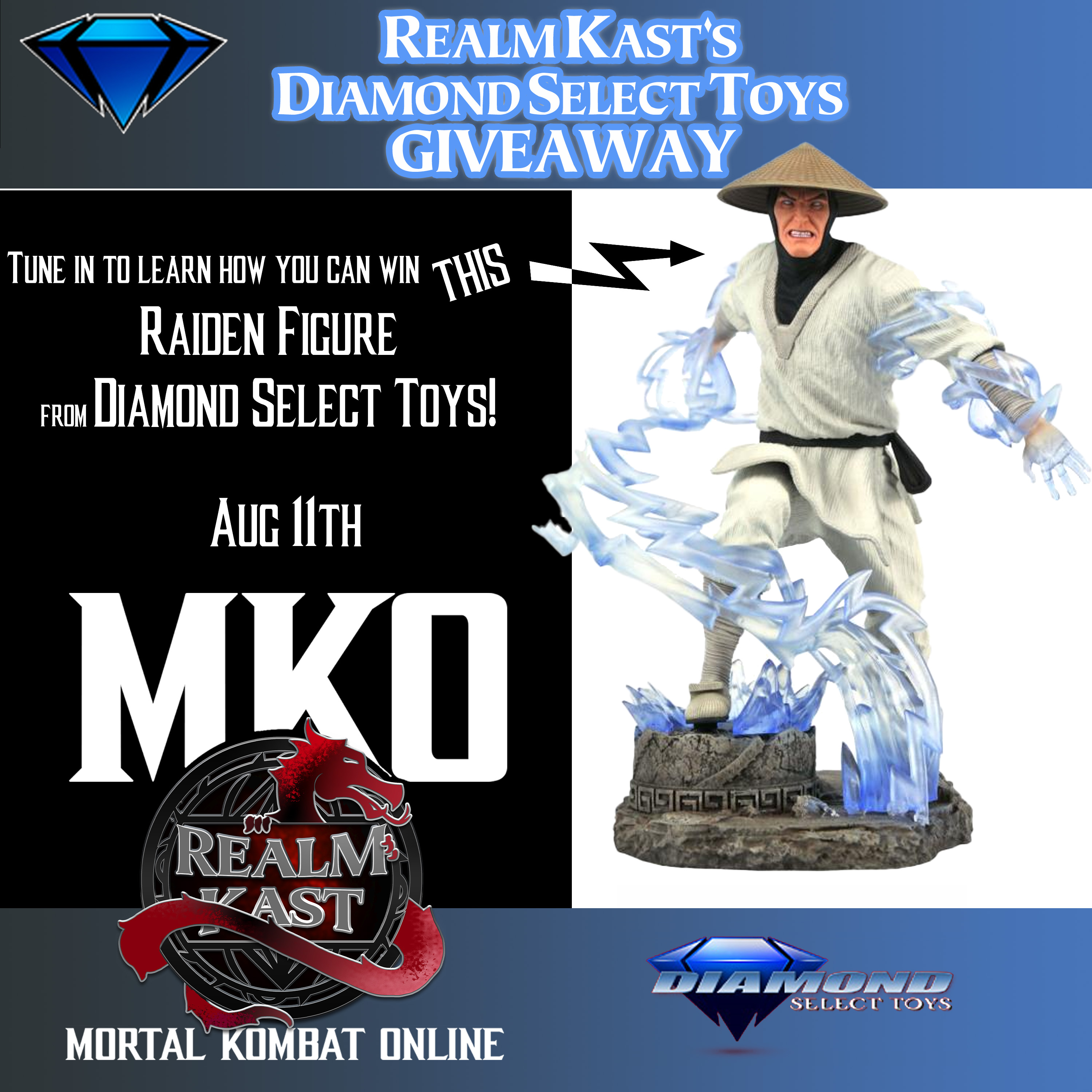 In addition to this episode premiere we are excited to announce we are giving away exclusively to our Realm Kast listeners an electrifyingly awesome Mortal Kombat figure, provided to us by Diamond Select Toys, of Raiden the Protector of Earthrealm and everyone's favourite God of Thunder!