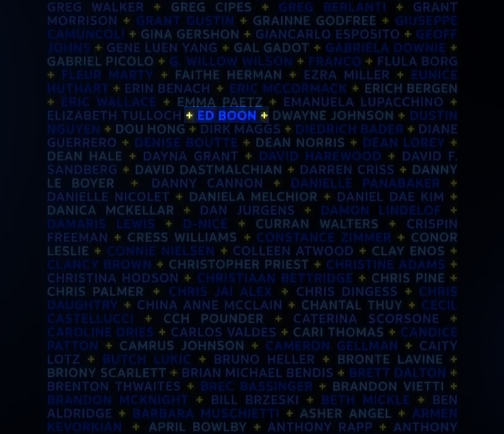 Boon's name can be spotted scrolling through at the 6 second mark, confirming the developer's involvement in the massive multimedia celebration. We've isolated a still shot below, just in case you had trouble seeing it: