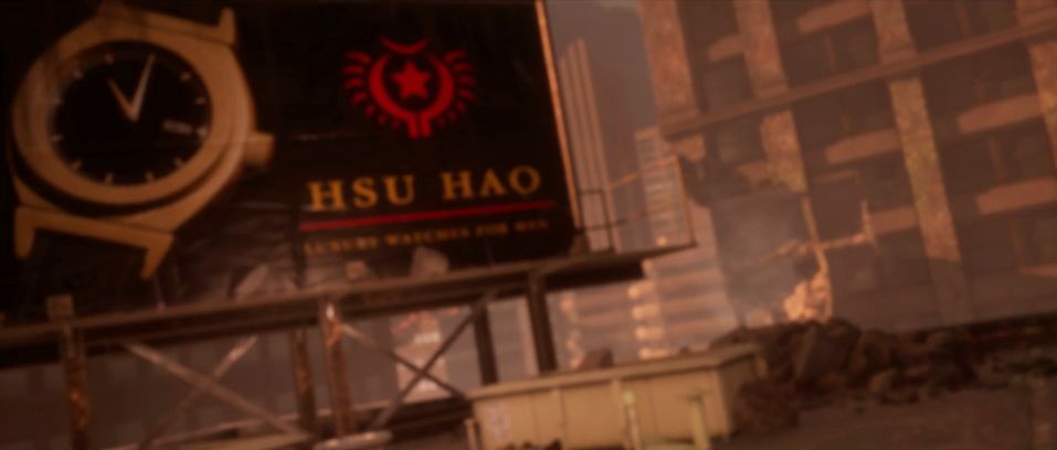 The billboard includes a red insignia that differs from the classic Red Dragon clan logo, but is reminiscent of the Special Forces brand. Hsu Hao originally debuted as a Special Forces fighter in Deadly Alliance, only to reveal his double agent status in character endings that told of his explosive betrayal. Fans of the "3D Klassic" era will remember collecting Hsu Hao's watch during the Konquest mode of 2006's Mortal Kombat: Armageddon [pictured below].