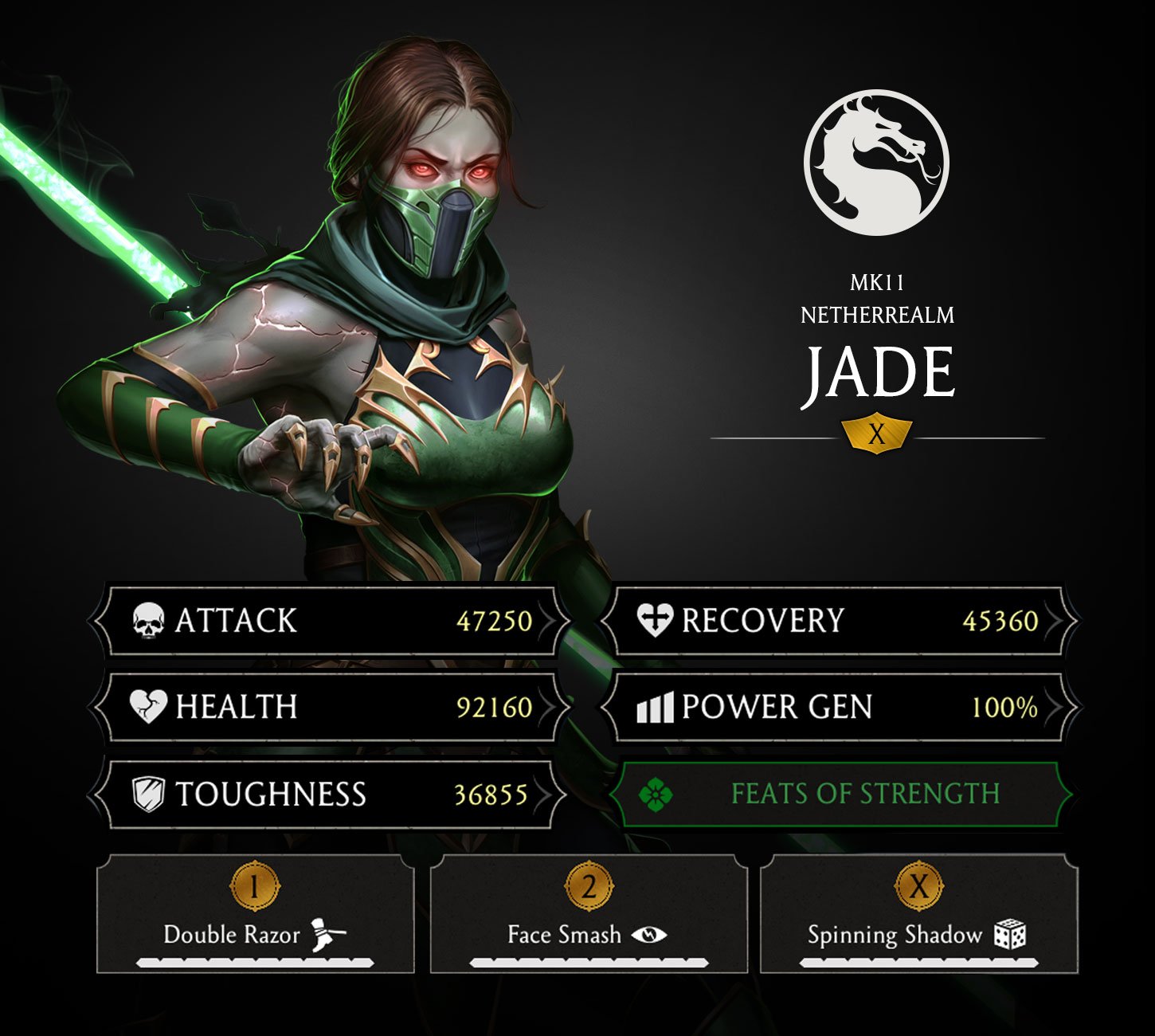 Update: A follow-up update offers a clearer picture of the stats you'll be able to utilize with Gold tier MK11 Jade in your team. Take a closer look at her levels below: