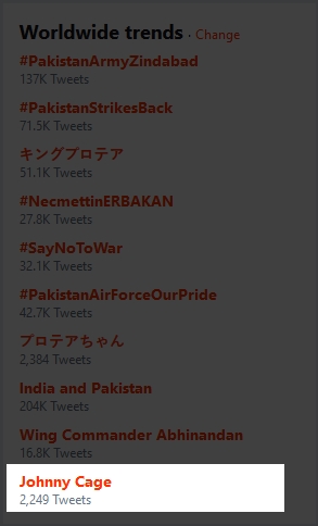 Shortly after the midnight reveal trailer dropped; "Johnny Cage" briefly joined serious global events as one of the Worldwide Trends collated by Twitter.