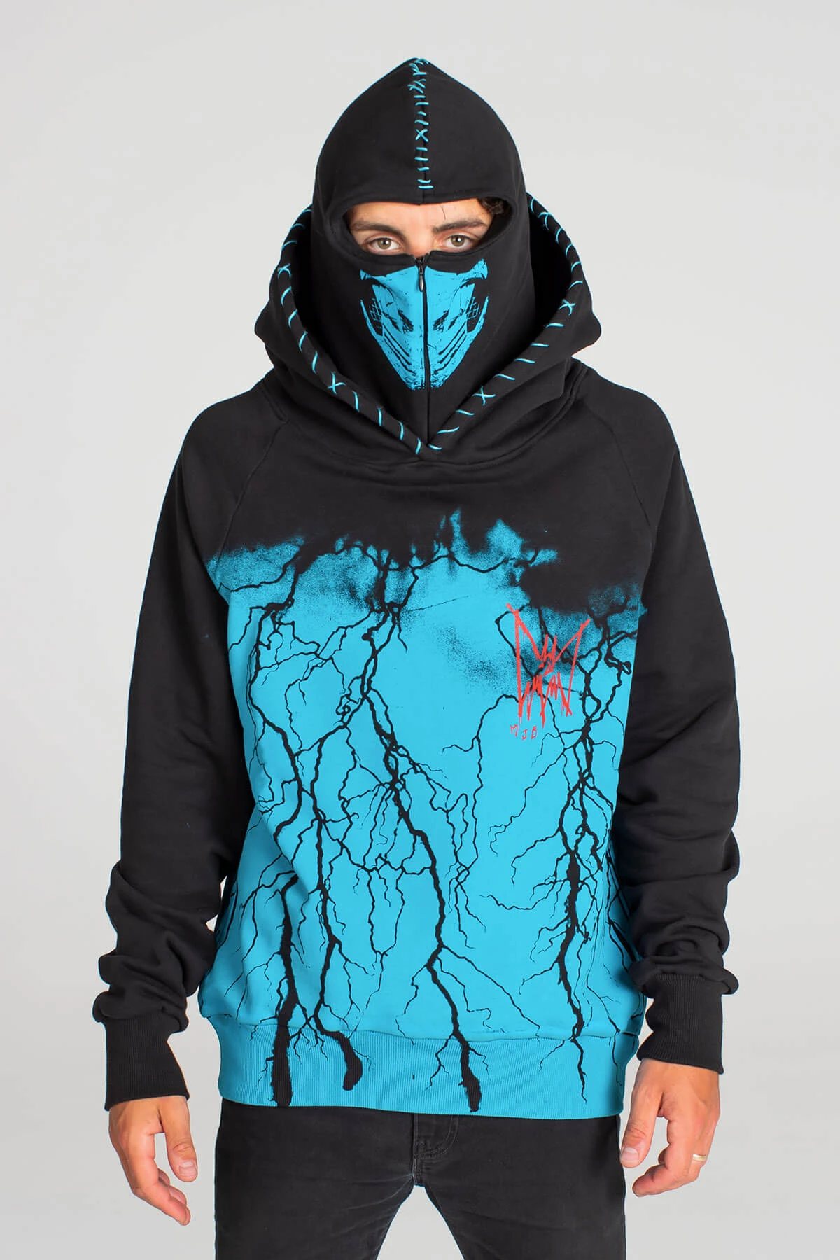The brand crossover takes advantage of the MJB label's trademark masked hoodies, also creating t-shirt, trouser, and beanie designs featuring the iconography of Sub-Zero, Scorpion, Raiden, and Baraka! Items can be purchased from the MJB Online Store with prices ranging from £60.00 for a beanie up to the premium £555.00 Baraka hoodie.