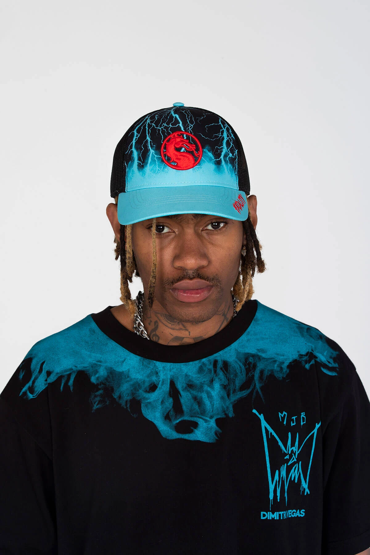 The collaboration includes established sportswear brand Everlast, and European DJ Dimitri Vegas, who also appeared as a free Sub-Zero skin in MK11, and created a Techno Syndrome remix for Mortal Kombat 11 trailers. Vegas carries over his cold association with custom ice blue track gear.