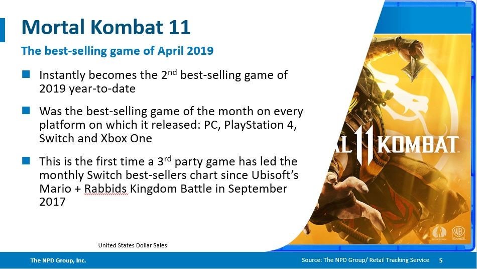 According to NPD Video Game Industry Analyst Mat Piscatella; Mortal Kombat 11 has become the second best-selling title for all of 2019, topping April sales across PlaySation 4, Xbox One, Nintendo Switch, and PC. Sony confirmed the game's strong start in the PlayStation sales chart earlier this month. NPD figures take into account digital and physical sales.