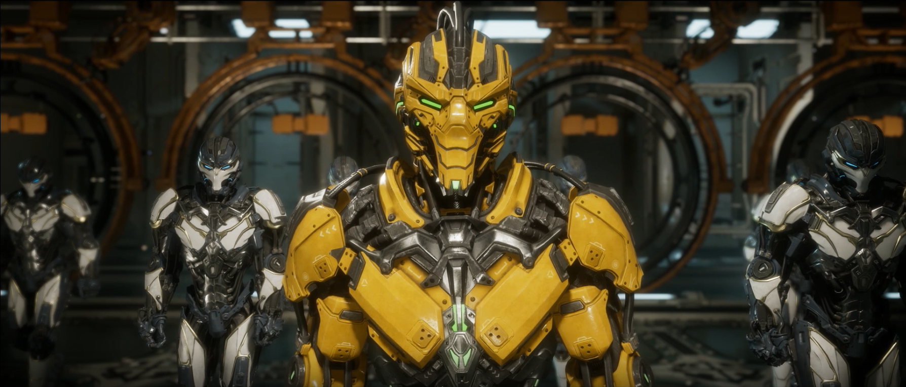 More of the hotly anticipated Story Mode is on display as Raiden and the mortals of Earthrealm come to grips with the encroaching return of their past! Only the Keeper of Time Kronika has the power to cause these temporal shifts. Sub-Zero, Scorpion, and more will unite to fight her loyal hordes, with a few surprising returning faces, including our first official glimpse of the cyber warriors Sektor and Cyrax! Watch closely and you'll also see a glimpse of an armored Geras and a new Liu Kang radiating with fire and electricity!