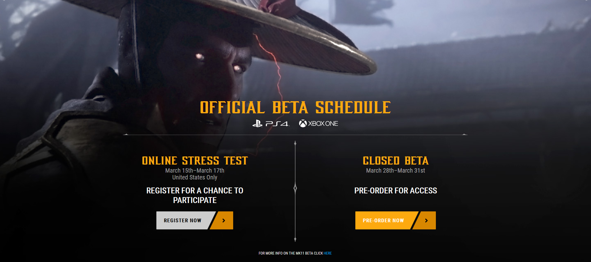 The Online Stress Test will take place on PlayStation 4 and Xbox One acros three days of kombat on Friday, March 15th to Sunday, March 17th. For practical reasons, the official sign-up is only open to players in the United States.