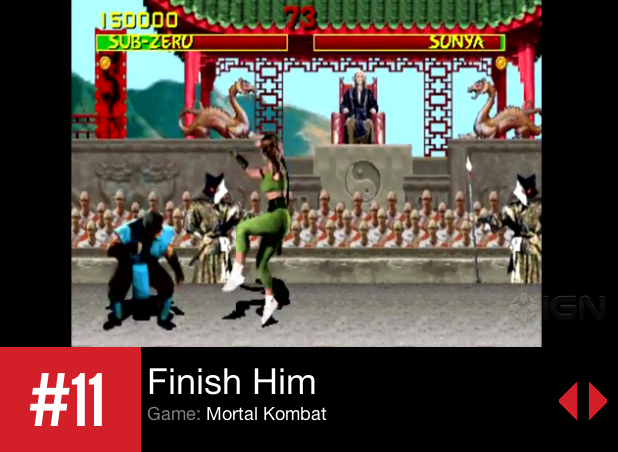Gaming website, IGN has made a list of their Top 100 Favorite Video Game Moments and Mortal Kombat's famous "FINISH HIM!" is featured among the top!
