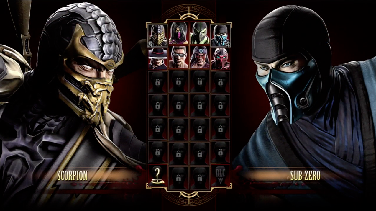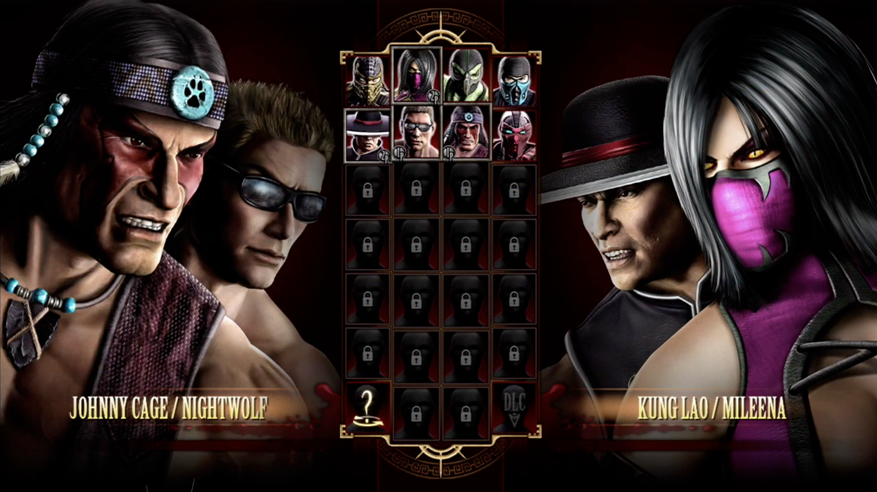 - Johnny Cage, Kung Lao, Mileena, Nightwolf, Reptile, Scorpion, Sektor and Sub-Zero are playable. Raiden and Shao Kahn are heavily implied to be in the game in some form. Around 26 characters will make the playable roster. A DLC option can be clearly seen in the lower right hand corner of the select screen.