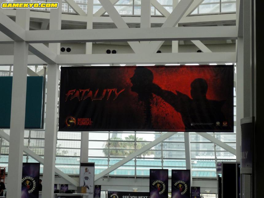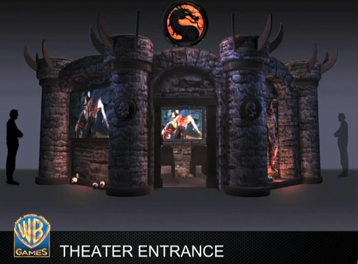 It's that time of year again and the E3 Expo is once again in full swing! Lasting officially 3 days from June 15th through the 17th, E3 is one of the largest events of the year for the video game industry in which upcoming projects and games are showcased. Though MK Online is not able to be present for live coverage this year, we are still committed to bringing you the best coverage possible from around the internet through trusted gaming media sites. By rounding up the information for you in one convenient location, all the sights from E3 related to the new Mortal Kombat game due out in 2011 will be easy to see. As the event begins with news conferences today, we bring you these images from the Mortal Kombat advertisement banner at the show. Credit goes to GameKyo.com for these images. Also below is a screen of Mortal Kombat's booth this year, with an elaborate castle theme. Image was captured from a Gametrailers feature.