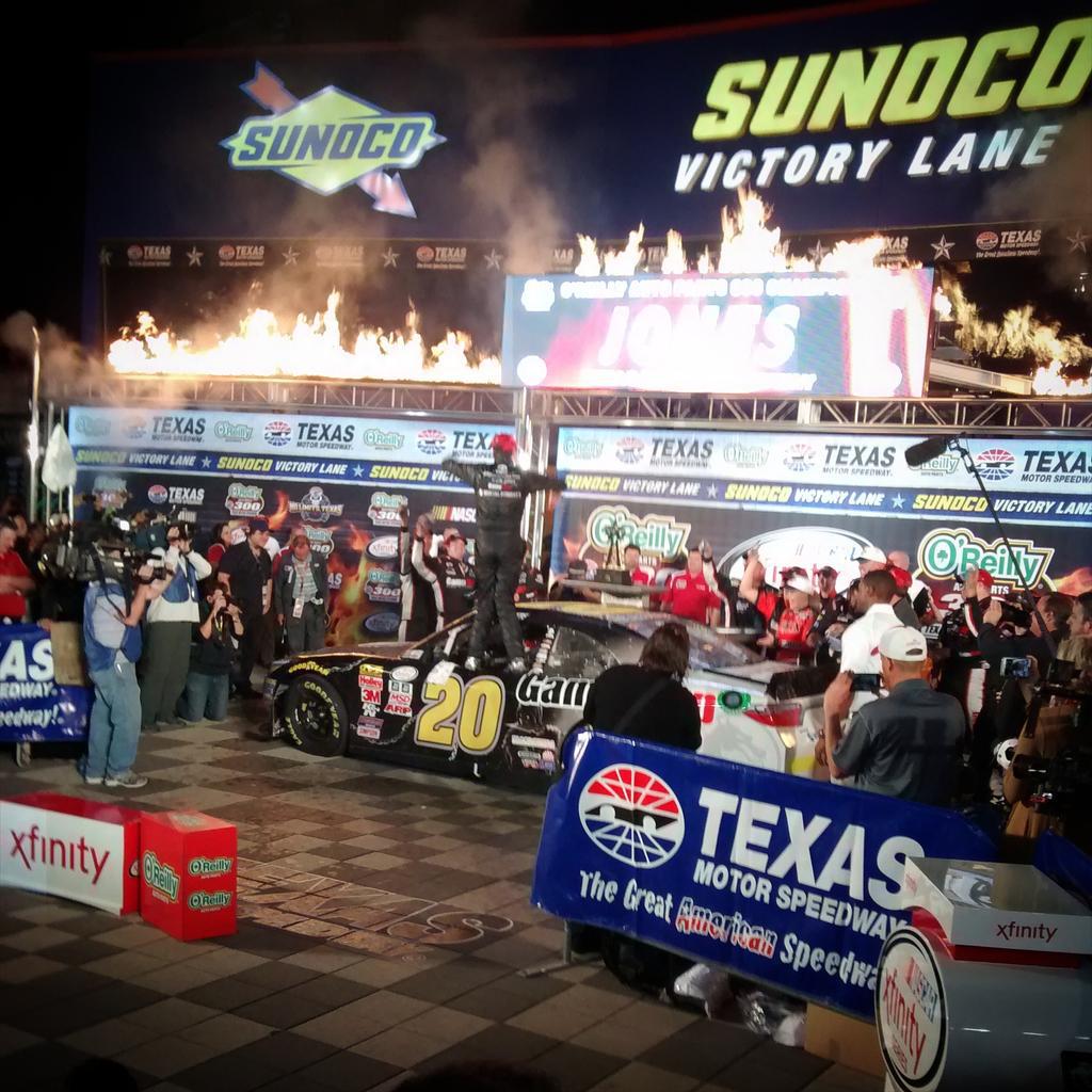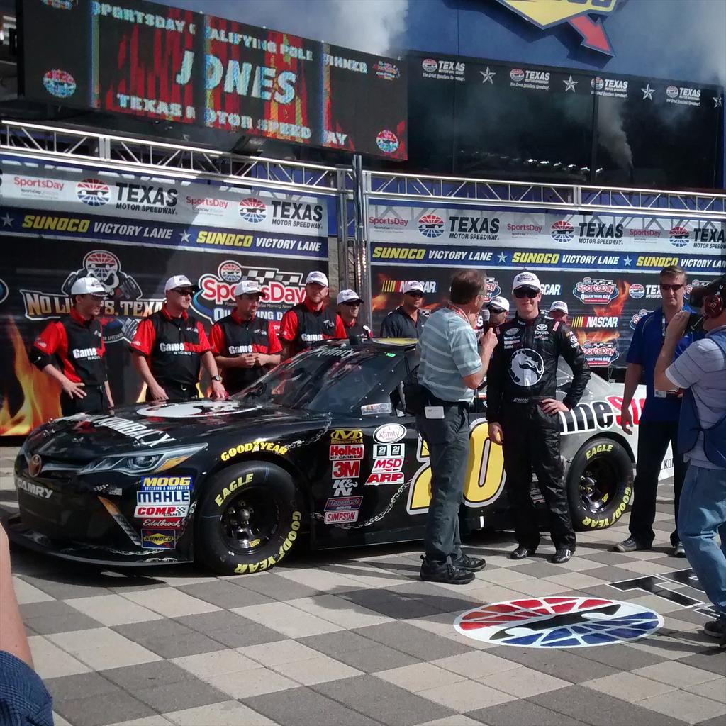The Texas Speedway win was a career first for Joe Gibbs Racing driver Erik Jones, who took pole position in the No. 20 GameStop Mortal Kombat X Camry. It was Jones' ninth start in the NASCAR minor league. Quick pit stops and a strong coaching crew are credited for helping the eighteen year old hold top five throughout the 200 lap race. NetherRealm Studios' resident petrol head Rigo Cortes was there taking photos.